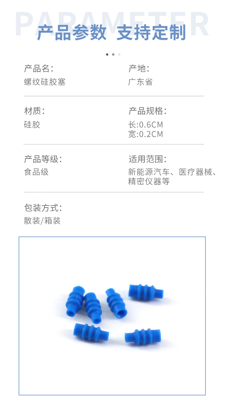 硅膠束線套主要運用于汽車端子接頭過線以及新能源插頭連接線裝配作用,產品在裝配過程之中可以起到良好的裝配以及穿插固定效果,在新能源產品當中它與塑膠以及五金精密接觸,外觀凹凸螺紋主要用于固定效果,材質選擇汽車用專用硅橡膠原材料加工,性能穩定,壽命良好!